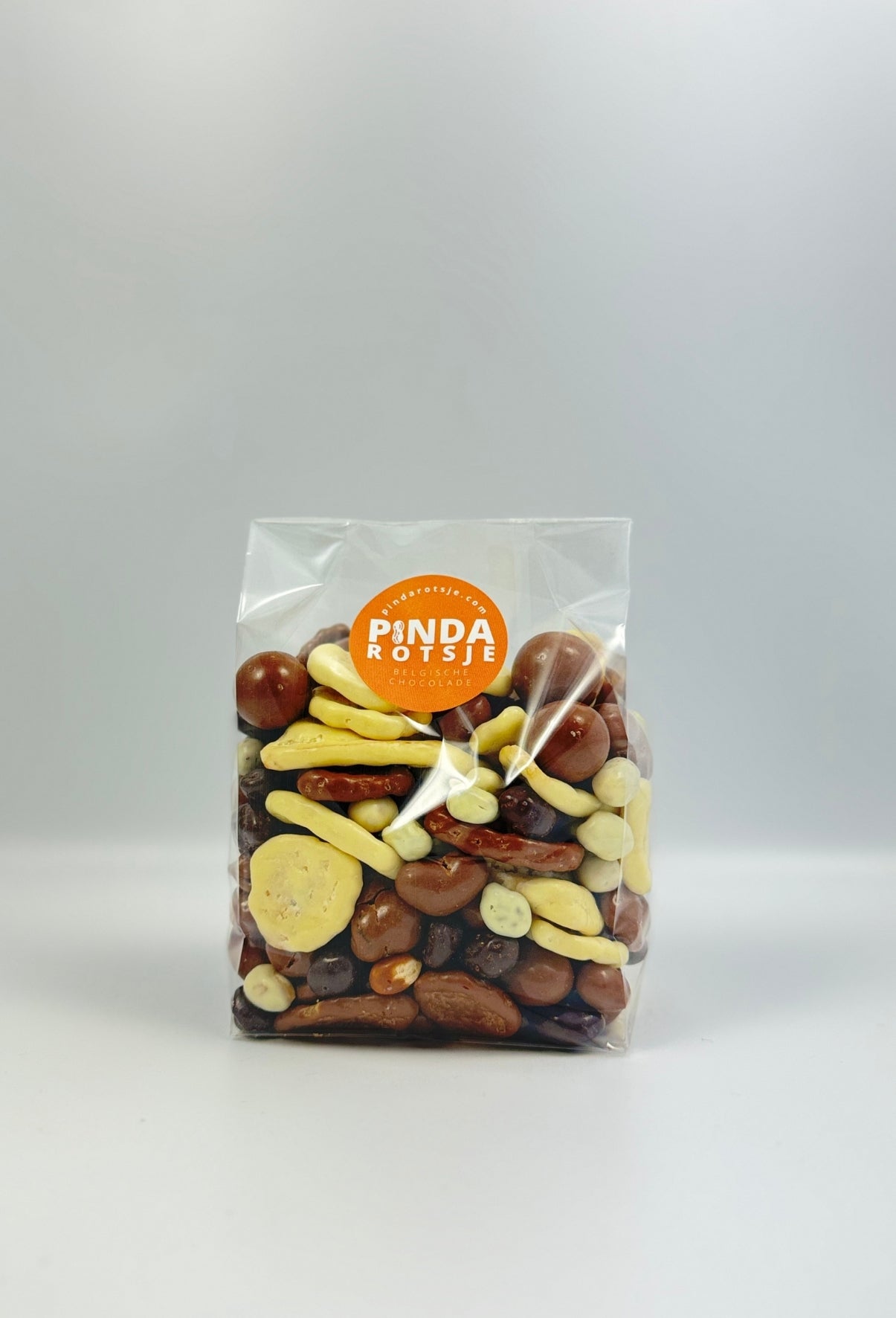 Onze Mix Grof bestaat uit banaan, hazelnoten, rozijnen en pinda's, grover voor een stoerdere bite. Dit zakje van 400 gram is ideaal als tussendoortje voor wie houdt van krachtige smaken en stevige structuren.