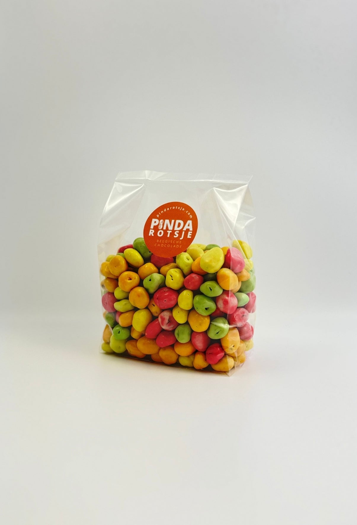 De kleurrijke chocolade zorgt voor een vrolijke uitstraling en een heerlijke bite. Een snack die zowel feestelijk als smaakvol is.